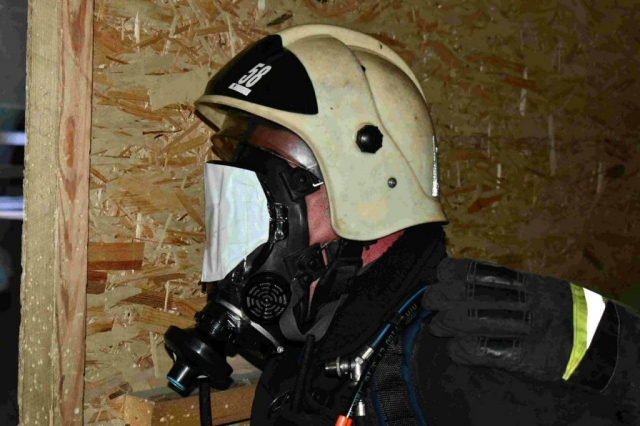 Все передвижения, в том числе учебный поиск и эвакуация пострадавшего выполняются в средствах индивидуальной защиты органов дыхания (СИЗОД). Часть занятия была посвящена правильной работе с этими системами: проверка средств защиты перед входом в задымлённое помещение,