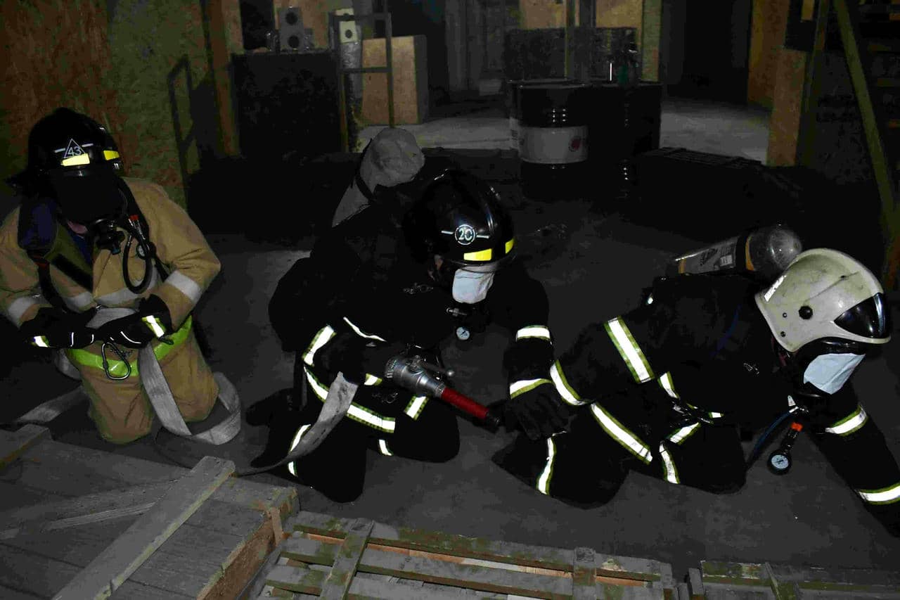 Основное учебное упражнение: звено газодымозащитной службы в составе трёх человек заходит в специально подготовленное помещение, из которого необходимо эвакуировать «пострадавшего». Условиями занятия, а также средствами имитации в «опасной зоне» воспроизводятся стрессовые факторы пожара: нулевая видимость, высокая температура окружающей среды, экстремальный шумовой фон.
