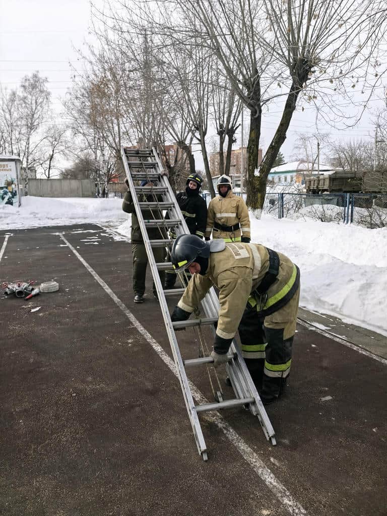 3 марта 2026 года проведено практическое занятие на базе Пожарно-спасательной части № 12 г. Благовещенска по теме: «Установка и подъём по трехколенной лестнице с прокладкой рабочей линией и подачей ствола на 2 й этаж учебной башни».