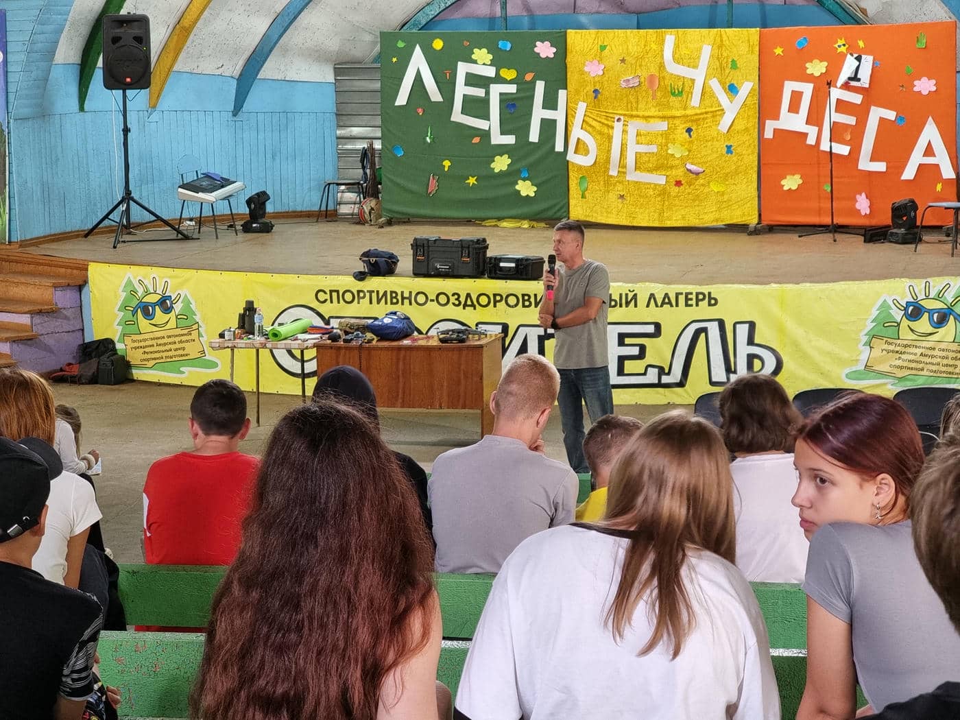 Заместитель начальника учреждения Сопнев А.В. совместно с инструкторами Школы ЛА (добровольческий поисково-спасательный отряд «ЛизаАлерт» в Амурской области) 6 августа 2025 года на базе спортивно-оздоровительного лагеря «Строитель» провели просветительское занятие с детьми и подростками, и «родительское собрание» с воспитателями и вожатыми, целью которого стала – профилактика пропаж.